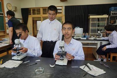 中学2年生は理科の実験で赤紫蘇を使って指示薬作りに挑戦していました。
