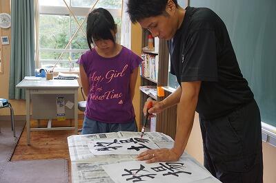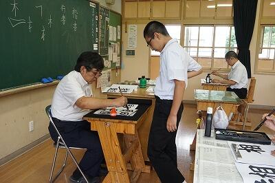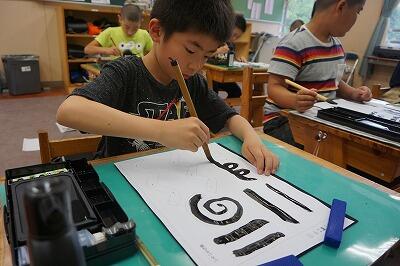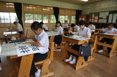 小学生は全学年一斉に書写を習いました。筆を使って上手に書くことができました!