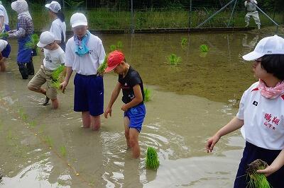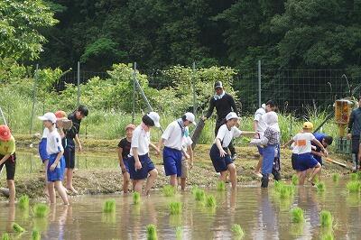清掃が終わった後はJAや地元の方に来ていただき、農業体験学習の一環で田植えをしました。