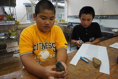 5年生の理科の授業風景です。流れる水のはたらきについて学習しています。