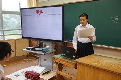 中学1年生は、デジタル教科書を使って国語の授業していました。
