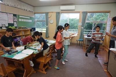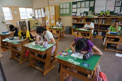 今日は毎年恒例となっている山村留学一日体験留学日でした。いろいろなところから、小学生が9名、中学生が4名参加してくれて、にぎやかな一日となりました。特に、普段少人数で学校生活を送っている銀上学園の子供たちは、たくさんの人数で勉強したり遊んだりできてとても楽しかったようです。その様子を一部紹介します。