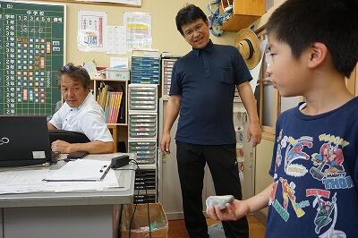 みんな小さいメダカに釘付けです!早く大きくなあれ!