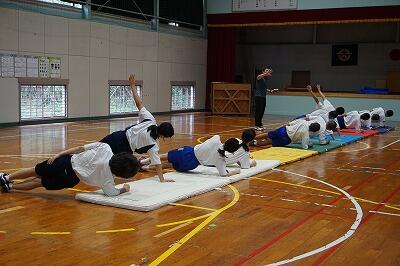 小学校の子供たちは体育ではダンスの全国大会に向けて細かな部分をそろえる練習をしたりバスケットボールをしたりと頑張っていました。