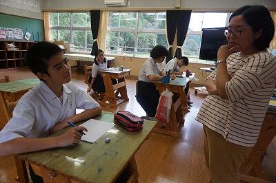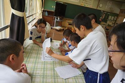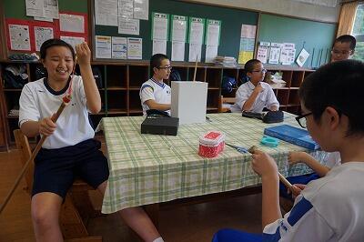 次にそれぞれの教室に分かれて授業に参加しました。頓知を効かせたり、頭をひねったりと、みんな一生懸命参加していました。