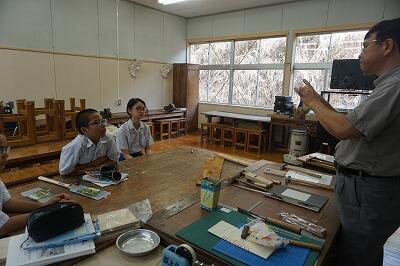 午後は土砂災害防止教室が行われました。西都土木事務所の方が来られて丁寧に説明してくださったり、模型を用いてシュミレーションをしてくださったりと楽しく教えていただきました。