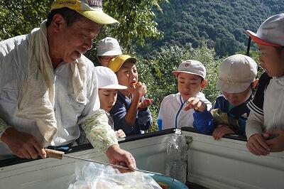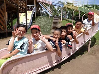収穫した後は、グラウンドに新しく設置された遊具を使って楽しみました。