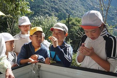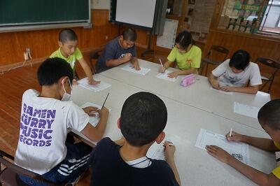 今日は毎年恒例となっている山村留学一日体験留学日でした。いろいろなところから、小学生が9名、中学生が4名参加してくれて、にぎやかな一日となりました。特に、普段少人数で学校生活を送っている銀上学園の子供たちは、たくさんの人数で勉強したり遊んだりできてとても楽しかったようです。その様子を一部紹介します。