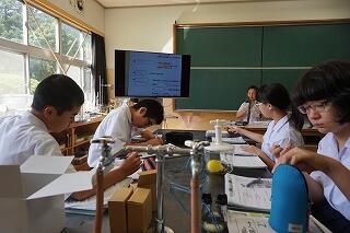 3年生の理科の授業風景です。温度計の使い方を学習しています。