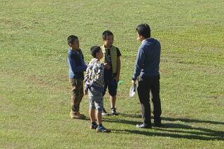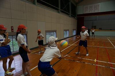 小学生は、バスケットの練習です。みんなでパスの練習をしました。
