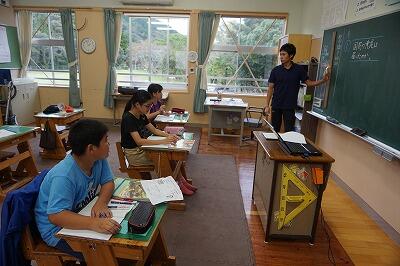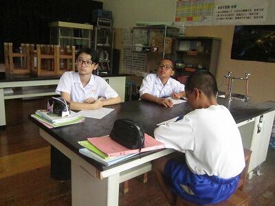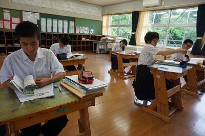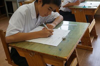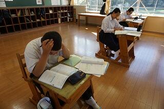 中学2年生は、理科の復習問題に集中して取り組んでいました。