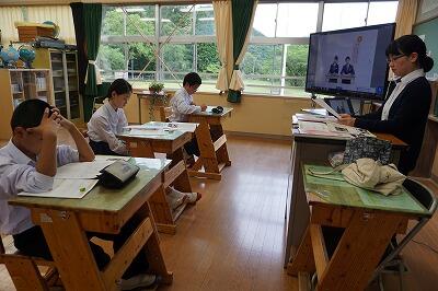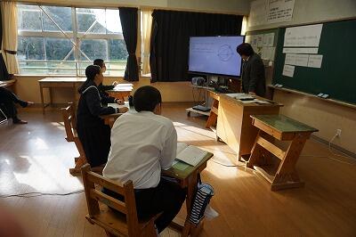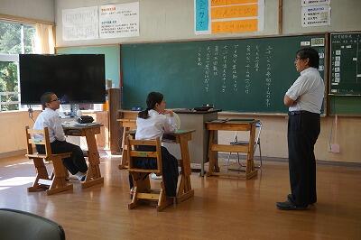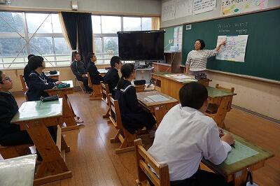 授業は、学力向上の取り組みとして、中学3年生の数学を宮大の先生に見ていただきました。