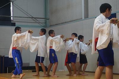 中学生は午後は体育で伝統文化教室中尾棒踊りの練習に取り組んでいました。初めておどる生徒にはなかなか難しい踊りですが、運動会までにはしっかり覚えます。今年も勇壮な踊りが見られることでしょう。