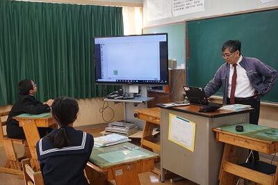 中学1年生は、デジタル教科書を使って国語の授業していました。