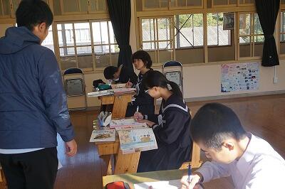 中学生は、社会と美術の様子です。一生懸命取り組んでいますね。