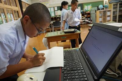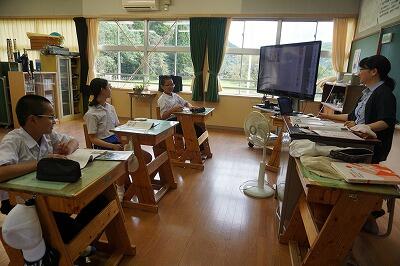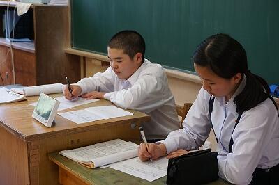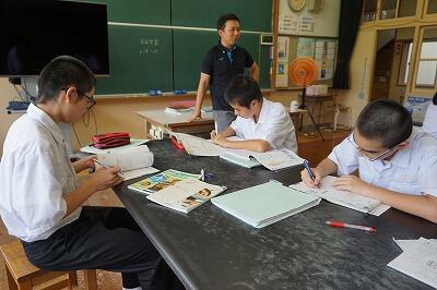 中学生も勉強を頑張っています。今日の写真は1年生が数学、2年生が国語、3年生が英語の授業を受けているところです。姿勢や表情もいいです。