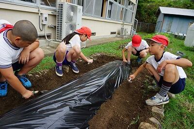 そんな絶好のチャンスに、小学生はお芋の苗植えをしました。