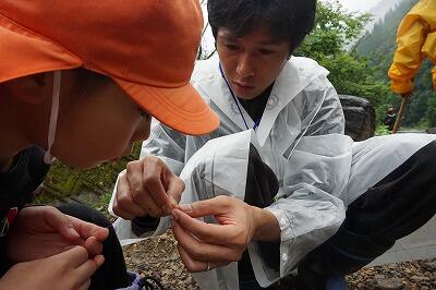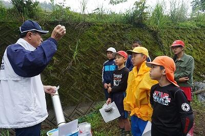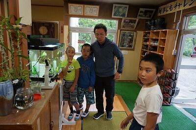 みんな小さいメダカに釘付けです!早く大きくなあれ!