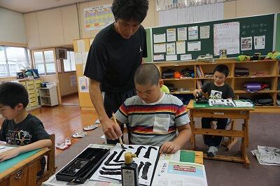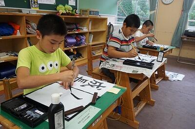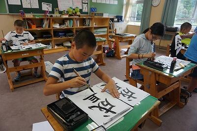 小学生は全学年一斉に書写を習いました。筆を使って上手に書くことができました!