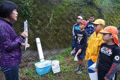 午後は土砂災害防止教室が行われました。西都土木事務所の方が来られて丁寧に説明してくださったり、模型を用いてシュミレーションをしてくださったりと楽しく教えていただきました。