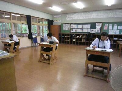 午前中、小中学生総合学力検査を受けました。時間一杯問題に取り組みました。