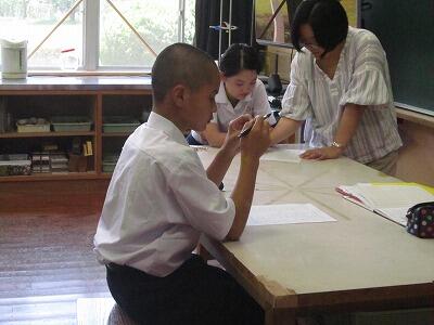 次にそれぞれの教室に分かれて授業に参加しました。頓知を効かせたり、頭をひねったりと、みんな一生懸命参加していました。
