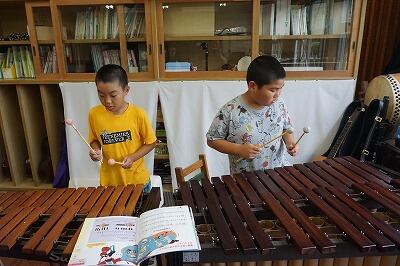 小学生は、図工の作品作成や音楽の授業に、いきいきと参加しています。