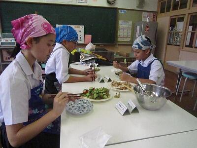 5年生はほうれん草のおひたし・ゆで卵をつくり、6年生は野菜いため・スクランブルエッグをつくりました。どれもおいしそうにできました!