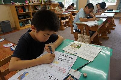 3年生は漢字のお勉強中でした。書き順をしっかり覚えるために復習を頑張っていました。