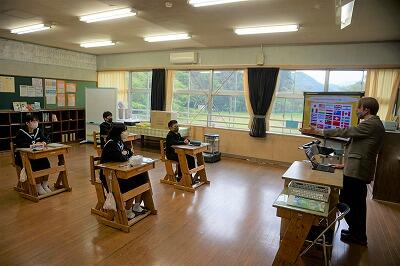 小1・2年生の音楽です。「どんなうたがあるかな」という学習で、絵を見ながらCDを聞いて歌を歌いました。
