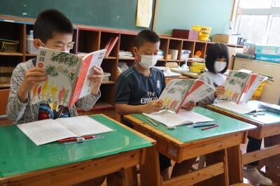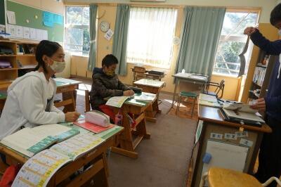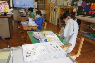 小学生の国語の学習です。漢字の書き取りで、一文字一文字を丁寧に描くことや姿勢を意識して書くなど目標を持って取り組んでいました。4年生は「ごんぎつね」の作品の登場人物の気持ちを考えながら読んでいました。