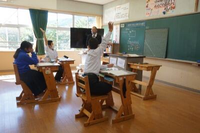 中学1年生の数学の学習です。「関数」について、先生の質問に元気に返事をしていました。自分から授業に参加して、学ぼうとする姿勢がいいですね。