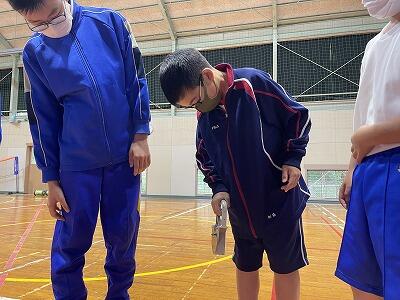 中学生は、体育で体力テストの種目の一つ「握力」に取り組みました。自分が思っていたよりも記録が良かった生徒が、積極的にアドバイスをする中で少しずつ記録を伸ばしていました。