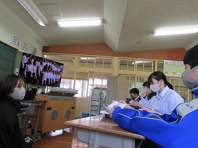 中学1,2年生の音楽の授業。引き続き合唱の音取りや声出しを頑張っています。