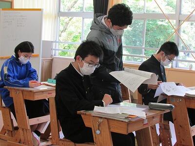 中学3年生の社会の授業です。第1回実力テストの解説をしました。できないところができるように頑張ってください。