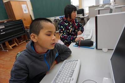 教室では、2.4年生が段ボールハウス作りをしていました。