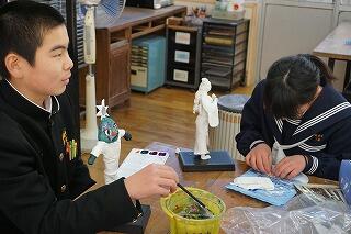 中学1年生の美術は、粘土を使った彫塑ですね。思い思いの人物を作っています。