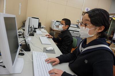 パソコンを使って調べ学習をしていました。プレゼンの作成に試行錯誤していました。