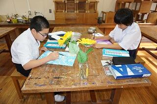 中学1・2年の美術の授業です。 真剣に取り組んでいました。毎週徐々に作品が仕上がっています。