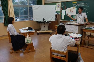 中学校2年生は数学「一次関数」と理科「無脊椎動物のなかま」の学習をみていただきました。2次関数は難しい問題でしたがよくできていました。イカの解剖は興味深く真剣に取り組んでいました。