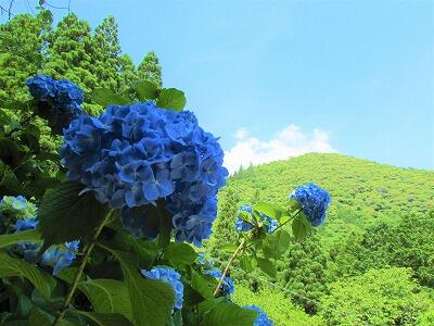今日は晴天だったため、青空や山々の緑に青い紫陽花が鮮やかに映えていました。雨に濡れた紫陽花も大変美しいです。参観日等で来校された際にぜひご覧ください。