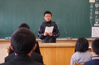 校長先生のお話を聞いた後小中学生の代表が意見発表をしました。