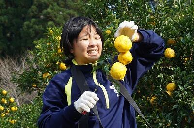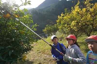午後からは,地域の方に協力をいただきながら、「ゆずちぎり体験」をしました。