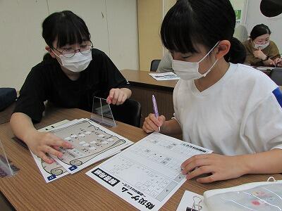 お風呂を済ませ、夜は「防災謎解き」をしました。ペアで相談しながらクイズを解きました。