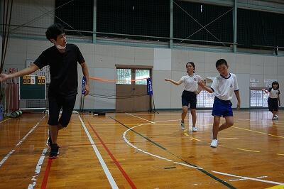 小学生の体育の授業です。体育館で、ダンス練習を元気いっぱいに活動しています。