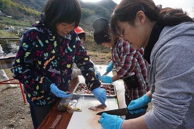 その後、全校でかぐらの里に移動をして、パエリアづくりに挑戦しました。