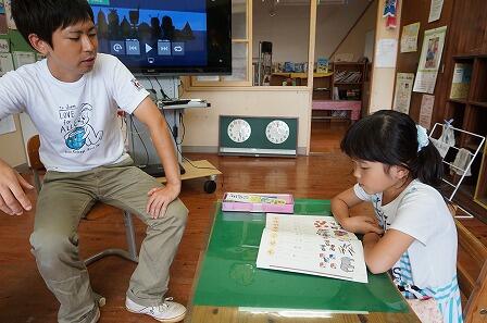 中学1年生の英語は、歌から始まり会話の練習をし、2年生は、理科で体の仕組みを学習し、