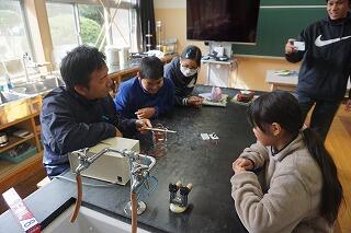 6年生は理科で電流と電圧の学習をしていました。シャープペンの芯が真っ赤になるのを興味津々で眺め、楽しく学習に取り組んでいました。