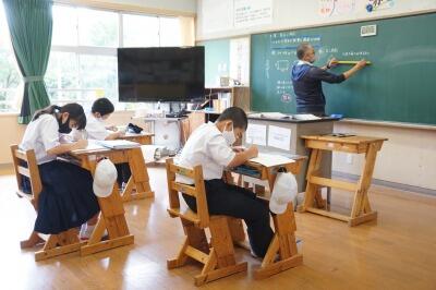 中学1年生の数学の授業です。図形の作図から、課題を解くところまで集中して学習していました。積極的に質問もしていました。