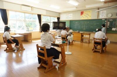 中学3年生の英語の授業です。運動会練習中の慌ただしい時期ですが、10月の実力テストを意識しながら学習しています。
